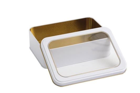 Lata decorativa rectangular con tapa transparente 18x13x6 cm