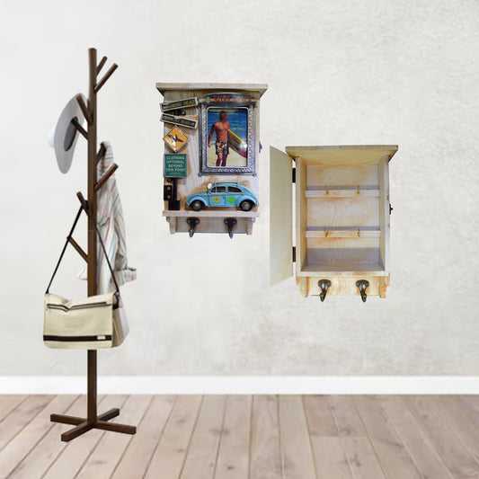 Adorno en madera y metal para llaves con 2 Ganchos
